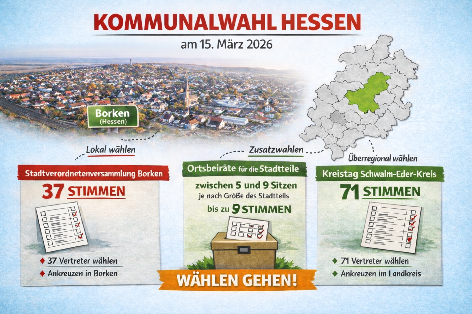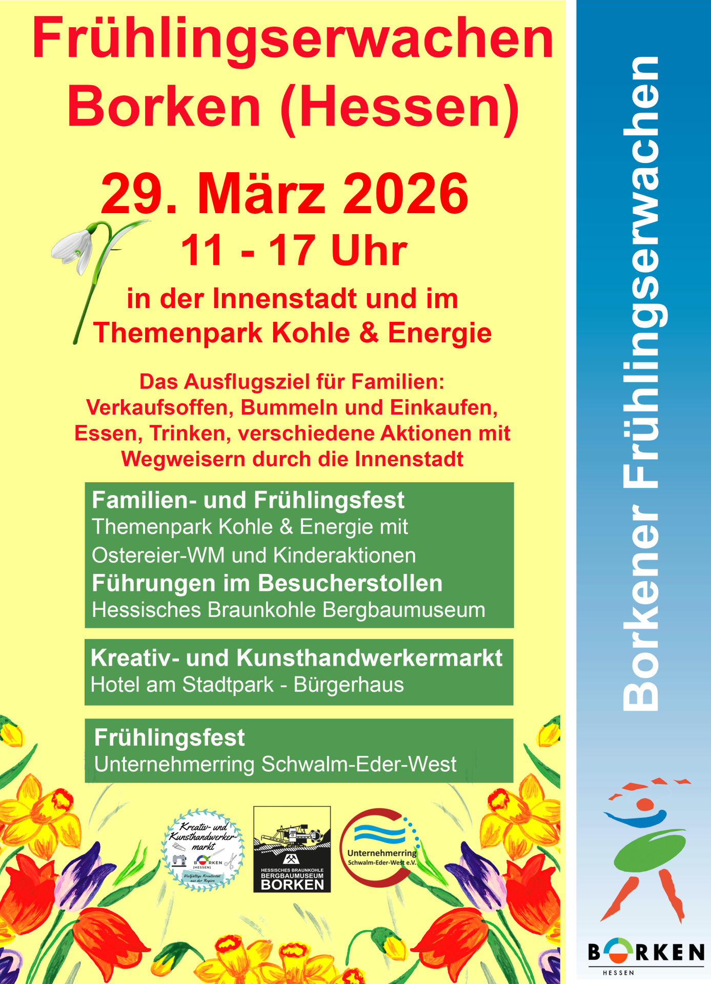 Auf den nächsten Seiten erfahren Sie viel Wissenswertes und Informatives über die Kommune, die sich dank hervorragender Infrastruktur und günstiger Lage zu einer modernen Wohngemeinde mit hohem Wohn- und Freizeitwert entwickelte. Borken hat eine Menge zu bieten: Das in Deutschland einmalige Hessische Braunkohle Bergbaumuseum mit dem Themenpark Kohle & Energie, das Borkener Seenland, mit dem Naturbadesee Stockelache, dem Singliser See und dem Naturschutzgebiet Borkener See.