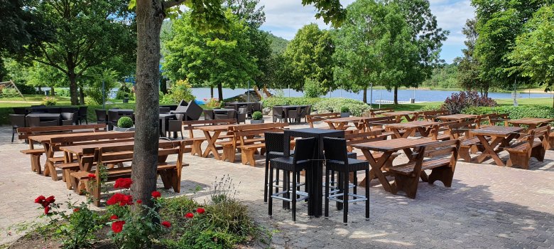 Das Restaurant Marina Beach ist direkt am herrlichen Naturbadesee Stockelache gelegen und bietet einen schönen Blick auf den See.