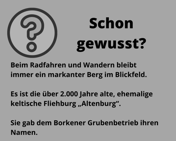 Es bieten sich vielfältige Möglichkeiten, die zum Radfahren, Wandern, aber auch zum kennen lernen der wunderschönen Landschaft um Borken mit ihren zahlreichen Sachzeugen aus der „Braunkohlezeit“ einladen.