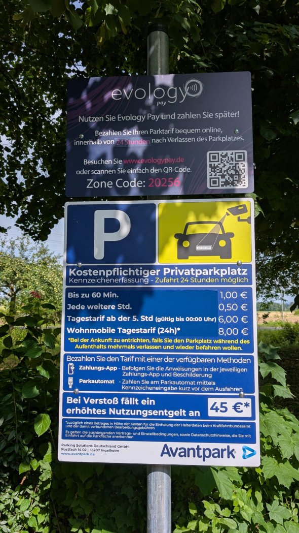 - Parkplatz: öffentlich, ganzjährig nutzbar, 24 Stunden zugänglich, kostenpflichtig