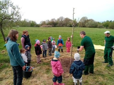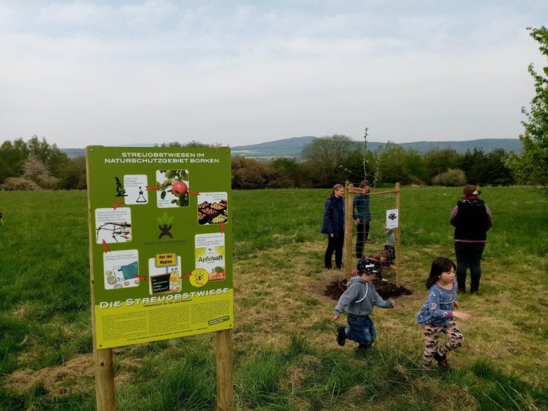 Zum europäischen Tag der Streuobstwiese hat die Streuobstpädagogin Carola Drüsedau gemeinsam mit dem Waldkindergarten „Borkenkäfer“ am 29. April einen „Prinz Albrecht von Preußen“ in das Naturschutzgebiet in Borken gesetzt. Gesponsert, initiiert und tatkräftig unterstützt wurde die Pflanzaktion vom Forst- und Umweltdienst in Borken.