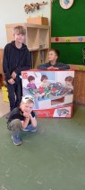 Die Kinder und die Erzieherinnen waren sehr beeindruckt von der Großzügigkeit von Phil und bedankten sich herzlich. Gemeinsam wurde der große Karton in die Einrichtung getragen. Am nächsten Tag baute der Vater von Phil, Christian Waldmann, den gesamten Eisenbahntisch auf und sofort wurde dieser von den aufgeregten Kindern in Beschlag genommen und sie spielten damit.