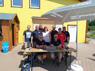 Die Freiwillige Feuerwehr Trockenerfurth verteilte vor der Reithalle Stempel und bot Speisen und Getränke an.