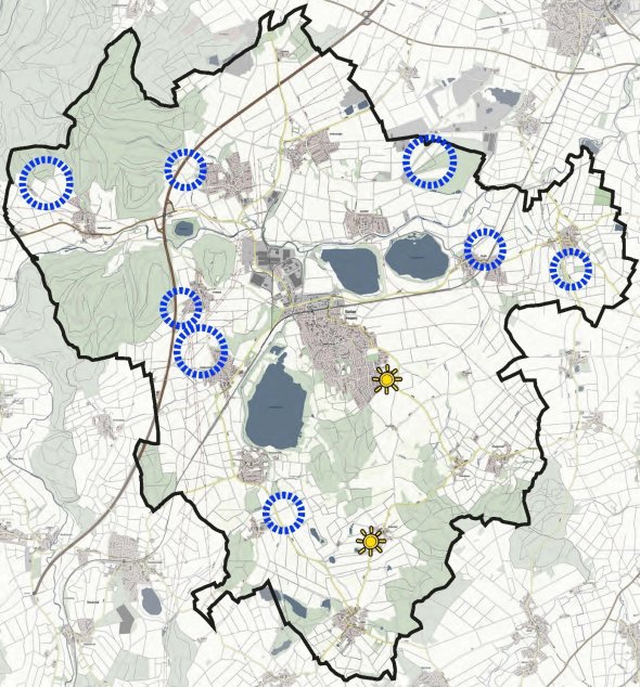 Stadtplaner Christoph Bachmann zeigte auf einer Übersichtskarte die in der Großgemeinde bereits bestehenden Freiflächensolaranlagen sowie angefragte Anlagen.