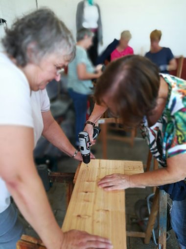 Workshop der Bezirkslandfrauen Ziegenhain zum Bau von Nistkästen für Wildbienen.