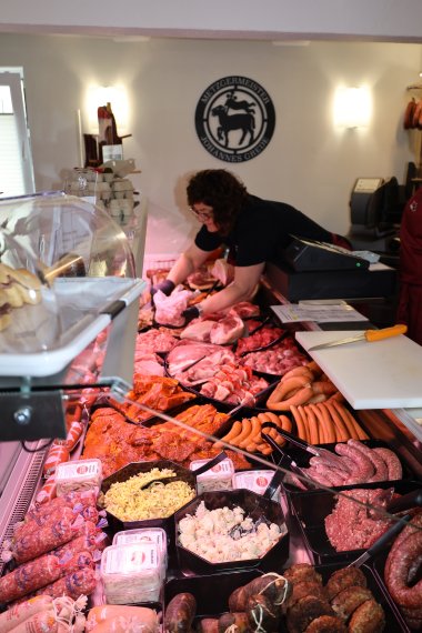 Frische Fleisch- & Wurstwaren und Produkte einer klassischen Metzgerei gibt es in der Kühltheke. Das geht von Schnitzeln, Steaks, Bratenstücke über Hackfleisch, viele Wurstwaren, Leberkäse, die traditionelle Rote Wurst und Salate.