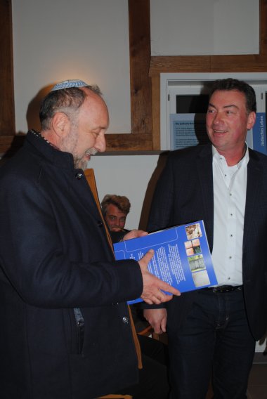 Bürgermeister Marcèl Pritsch begrüßte 60 interessierte Zuhörer im Historischen Rathaus, bedankte sich bei den Sponsoren und den privaten Spendern, die das Buchprojekt und die Forschungsarbeiten ermöglicht hatten und stellte einige neue Beschilderungen vor, die künftig im Stadtbild auf die jüdische Geschichte Borkens hinweisen werden.