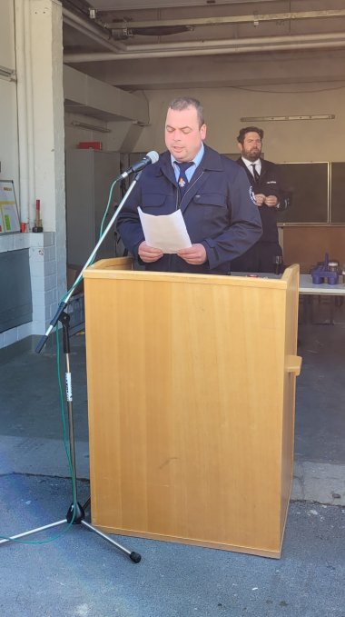 Stadtbrandinspektor Alexander Wilhelm richtete auch seine herzlichsten Grüße aus und dankte allen Besuchern für ihr Kommen. Er führte auf, dass die Ausbildung und geleistete Überstunden ohne Bezahlung abgeleistet werden. Dies dürfe nicht vergessen werden.