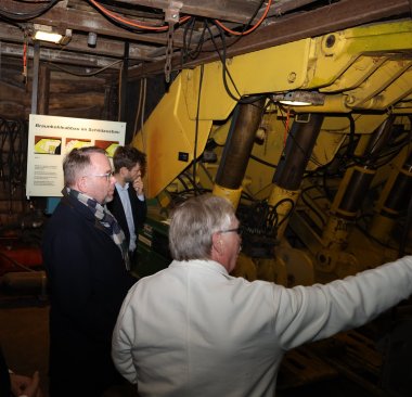Der Minister ließ sich die Bergbaugeräte unter Tage im Demonstrationsbetrieb vorführen, merkte an, wie wichtig das Thema Energie auch in Zukunft sein werde und wies darauf hin, dass derzeit in Borken eines der modernsten Umspannwerke Europas stehe, das zudem noch ausgebaut werde solle. „Sie haben die Energiewende des 21. Jahrhunderts von den fossilen zu den regenerativen Energien hier in Borken direkt vor der Haustür“, führte der Politikwissenschaftler aus. Gremmels bezeichnete seine Museumsführung als tief beeindruckend, versprach das Bergbaumuseum auch künftig wohlwollend zu unterstützen und kündigte einen weiteren Besuch des Freilichtmuseums in Borken an. Der Themenpark Kohle & Energie befindet sich derzeit in der Winterpause.