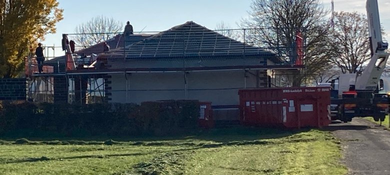 An der Friedhofshalle im Borkener Stadtteil Nassenerfurth werden zurzeit dringend notwendige Sanierungen durchgeführt. Die bisherige Biberschwanzziegeleindeckung des Daches sowie die Entwässerungsanlage waren in einem so schlechten Zustand, dass eine komplette Erneuerung unumgänglich geworden ist.