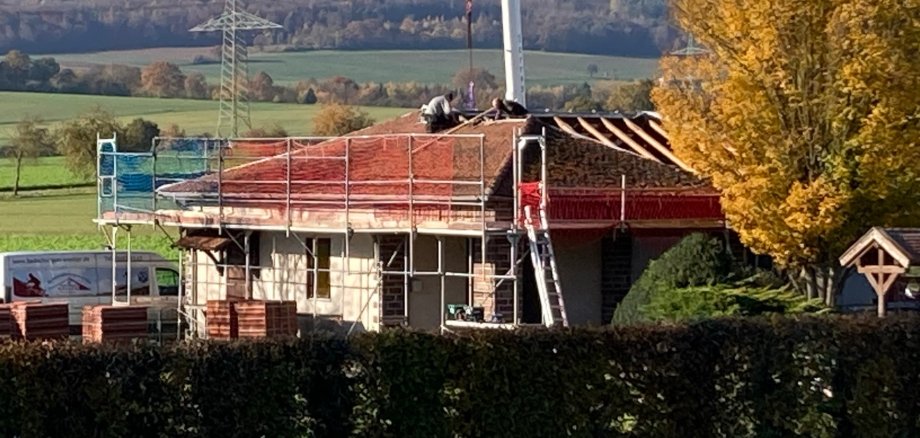 Das Dach der Friedhofshalle im Stadtteil Nassenerfurth wird erneuert.