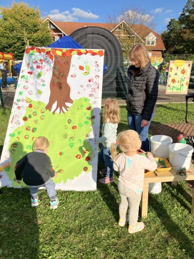 Weitere kindgerechte Aktionen waren die sogenannte Apfelbaumleinwand, an der sich die Familien verewigen konnten.