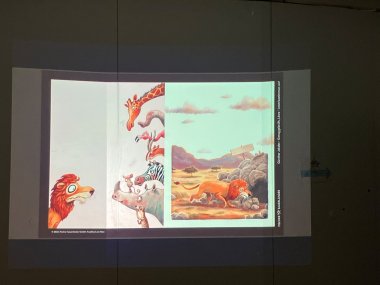 vorgelesen und die Bilder dazu groß auf der Wand präsentiert.