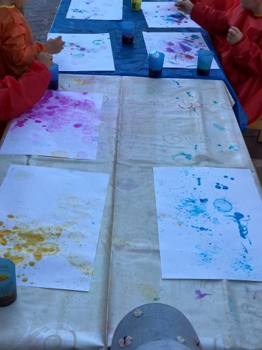 Im Freigelände wurden Seifenblasenbilder gestaltet.