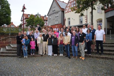 Die Nachfahren der jüdischen Familien reisten aus den USA, der Schweiz, den Niederlanden und aus Israel an, um die einstige Heimat ihrer Vorfahren zu besuchen. Am Bildrand rechts: Jörg Domes, der die Veranstaltung für den Geschichtsverein leitete.