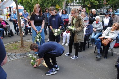 Schülerinnen und Schüler der Gustav-Heinemann-Schule legten an den Verlegeorten weiße Rosen auf die neuen Stolpersteine – ein praktischer Geschichtsunterricht.