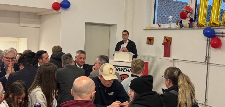 Stadtbrandinspektor Alexander Wilhelm bei seinen Glückwünschen.