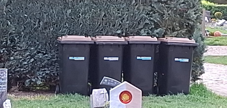 Ab sofort stehen auf den Friedhöfen der Großgemeinde Borken (Hessen) braune Mülltonnen der Firma Fehr-Knettenbrech für die Entsorgung von Grünschnitt zur Verfügung.