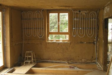 Einbau einer Wandheizung in einem Fachwerkgebäude.