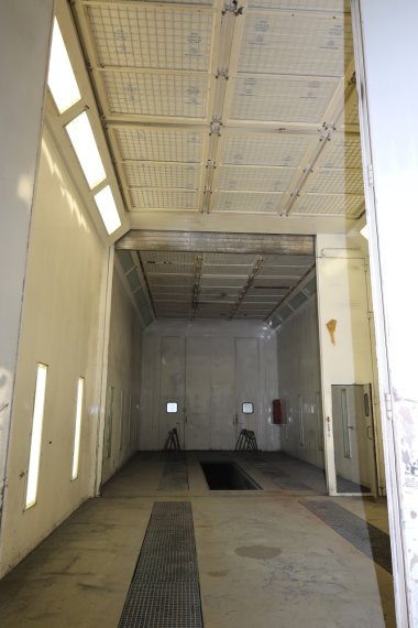 Die große Lackierkabine ist sehr gut für alle Fahrzeuge über 3,5 Tonnen, wie LKWs, Caravans und Boote geeignet und verfügt über eine hervorragende Technik.