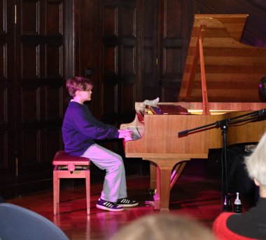 Den Start in den Abend macht Julius Eubel. Er war ein Sieger beim Jugendmusikwettbewerb 2025 und präsentierte drei Stücke am Flügel.